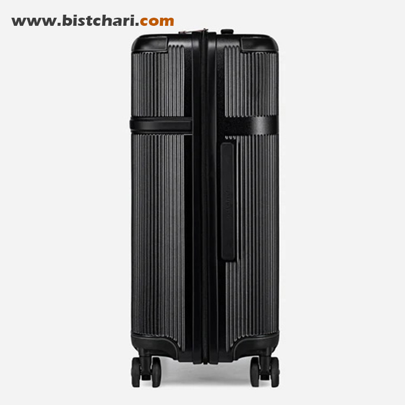 طراحی داینامیک: بدنه دارای خطوط عمودی کلاسیک است که علاوه بر زیبایی، مقاومت ساختاری چمدان را افزایش میدهد.