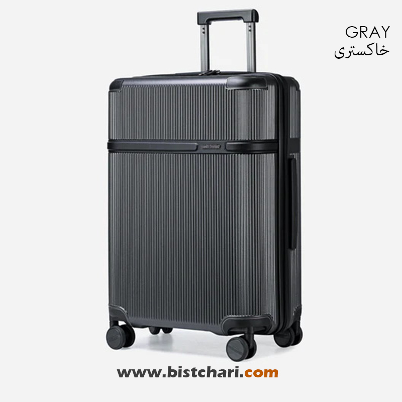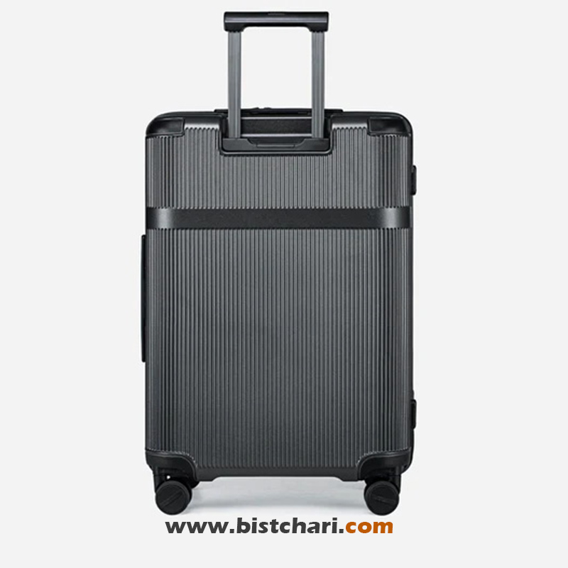 طراحی داینامیک: بدنه دارای خطوط عمودی کلاسیک است که علاوه بر زیبایی، مقاومت ساختاری چمدان را افزایش میدهد.
