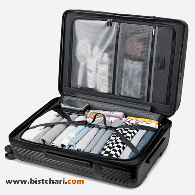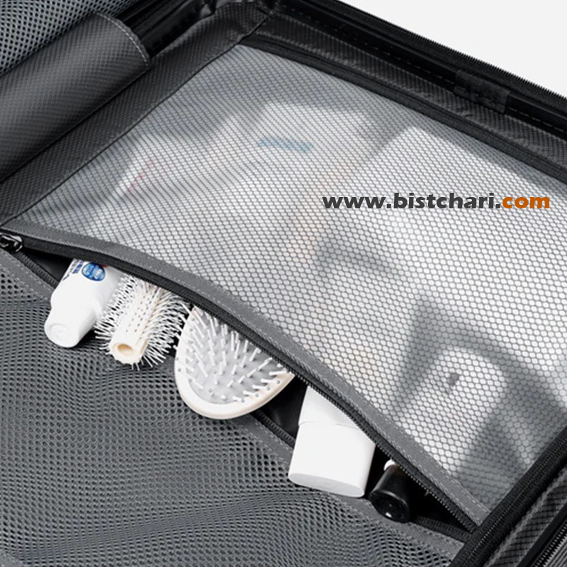 این چمدان مجهز به قفل رمزدار اختصاصی TSA (استاندارد فرودگاههای بینالمللی) است.