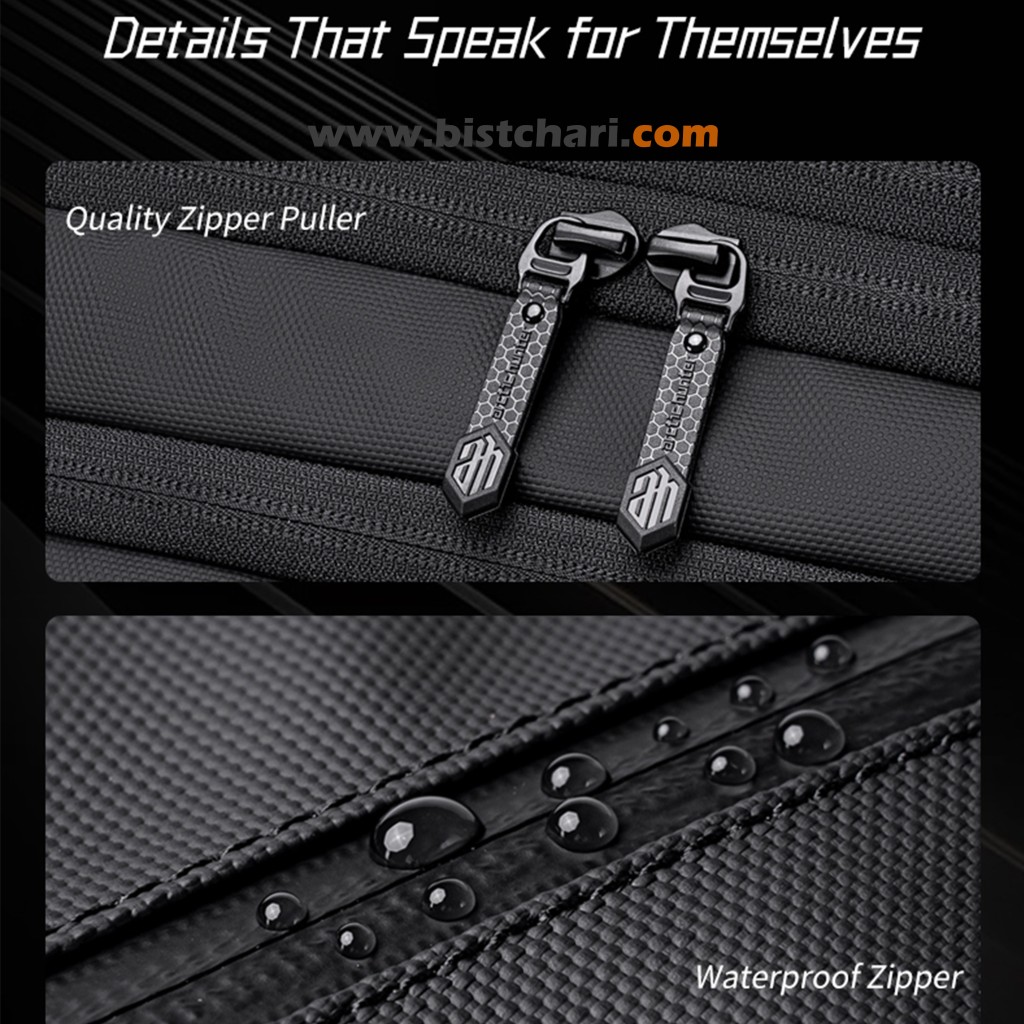 - دسته چرخدار، بندهای شانه و چرخها به راحتی قابل مخفی شدن هستند که تجربه استفاده بهتری را فراهم میکند.