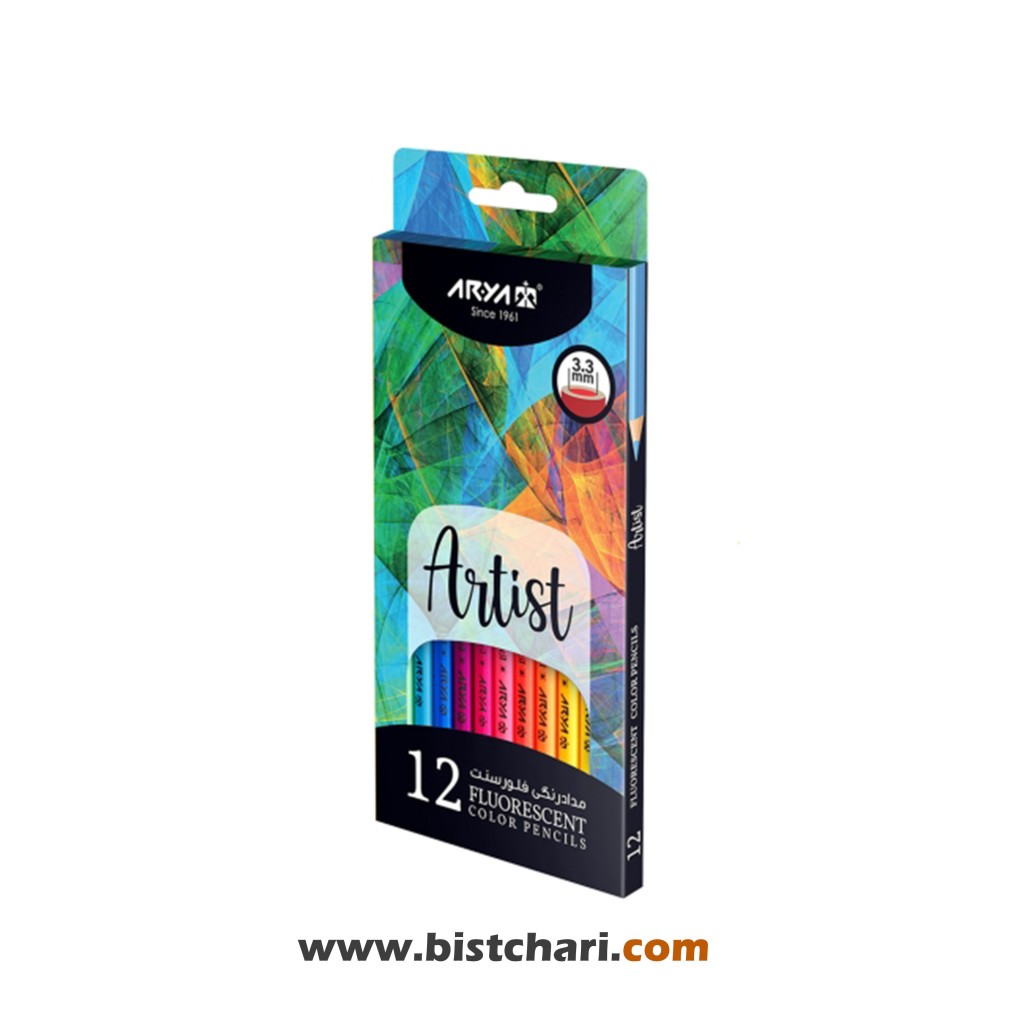 مداد رنگی 12 رنگ فلورسنت Fluorescent کالکشن Artist کد 3611 برند آریا Arya