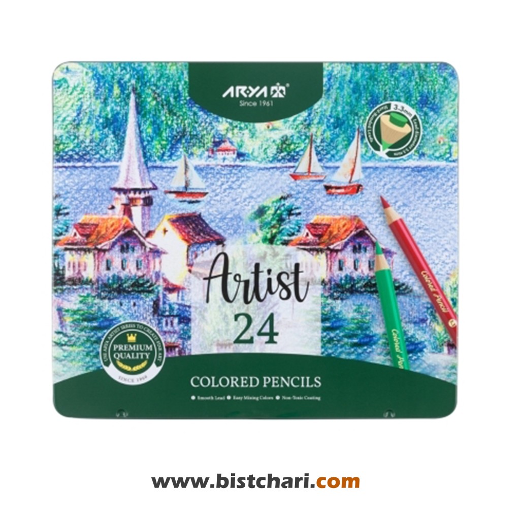 مداد رنگی 24 رنگ جعبه فلزی مدل Artist کد 3902 برند آریا Arya
