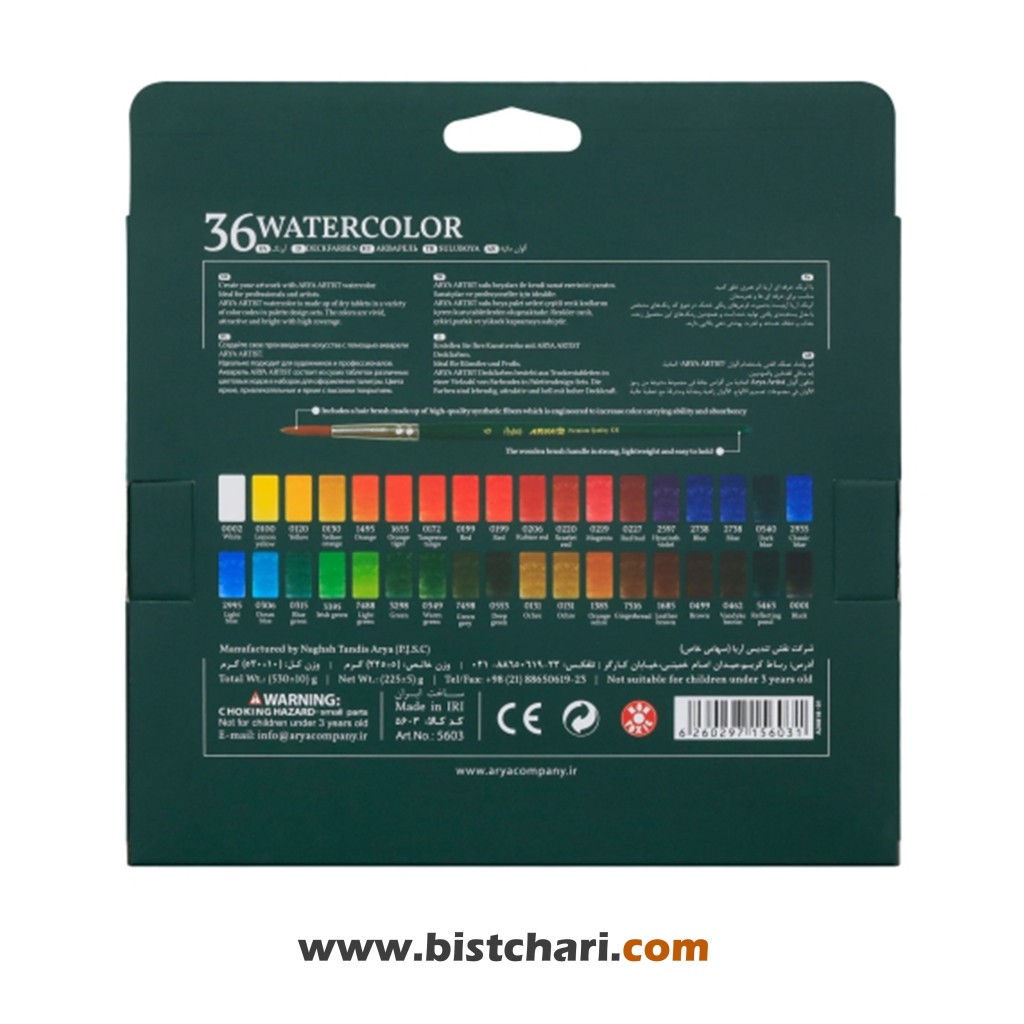 آبرنگ 36 رنگ مدل Artist کد 5603 برند آریا Arya