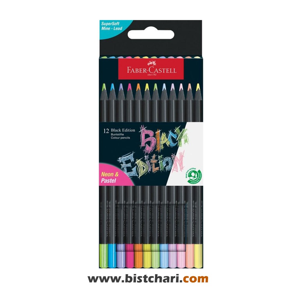 مداد رنگی 12 رنگ Black Edition نئونی و پاستلی کد 116410 برند فابر کاستل Faber Castell