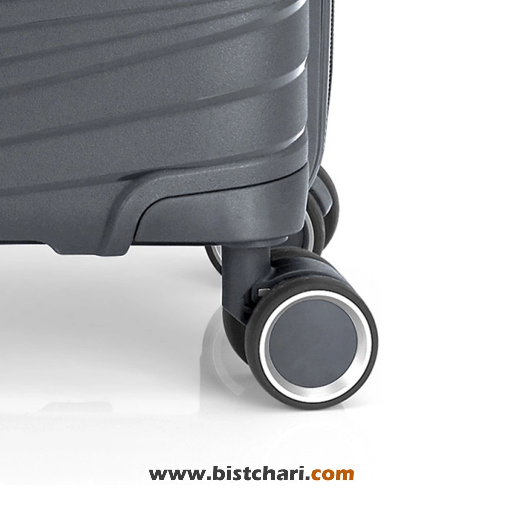 چرخ های به کار رفته در چمدان جنس سخت KIBA سایز متوسط به صورت دوبل می باشد که امکان چرخش ۳۶۰ درجه را دارند که می توانید به راحتی و نرمی آن را حرکت دهید و وزن چمدان را احساس نکنید.