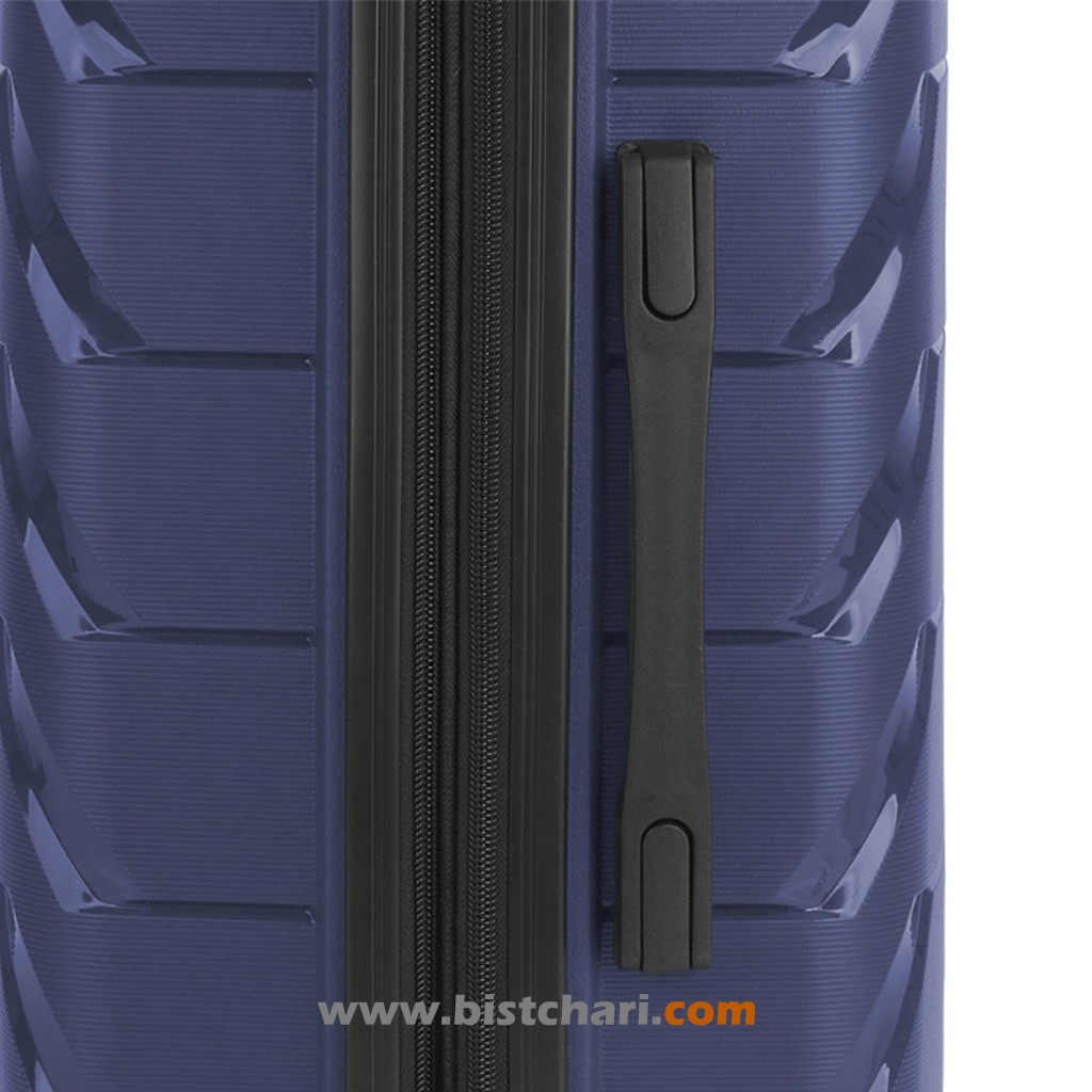دسته این چمدان به صورت تلسکوپی و از جنس آلومینیوم مقاوم به همراه قفل دو مرحله ای طراحی و تولید شده است.