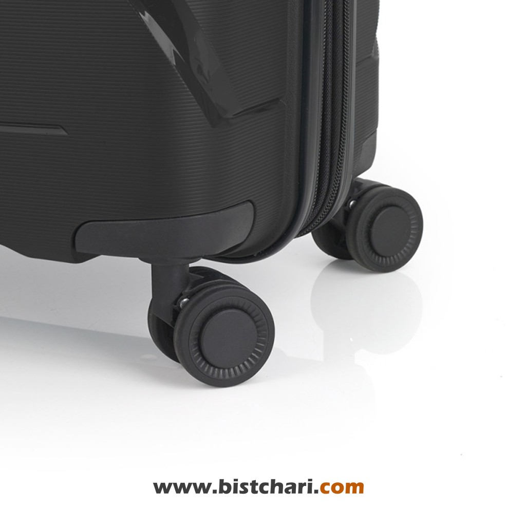 چرخ های به کار رفته در چمدان جنس سخت Origami چرخ های دوبل هستند.
