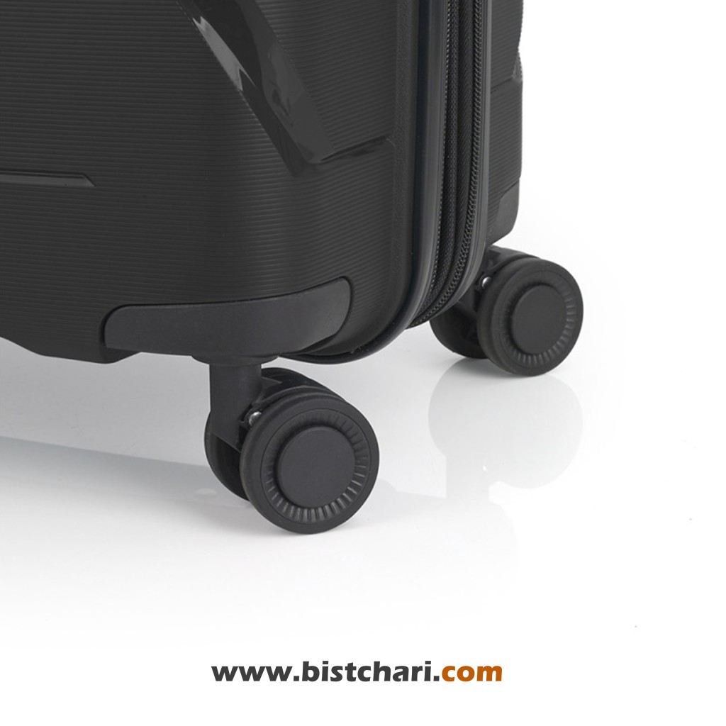 چرخ های به کار رفته در چمدان جنس سخت Origami چرخ های دوبل هستند.