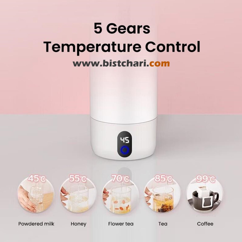 دارای 5 دمای از پیش تعیین شده : 45 درجه / 55 درجه/ 70 درجه/ 85 درجه/ 99 درجه