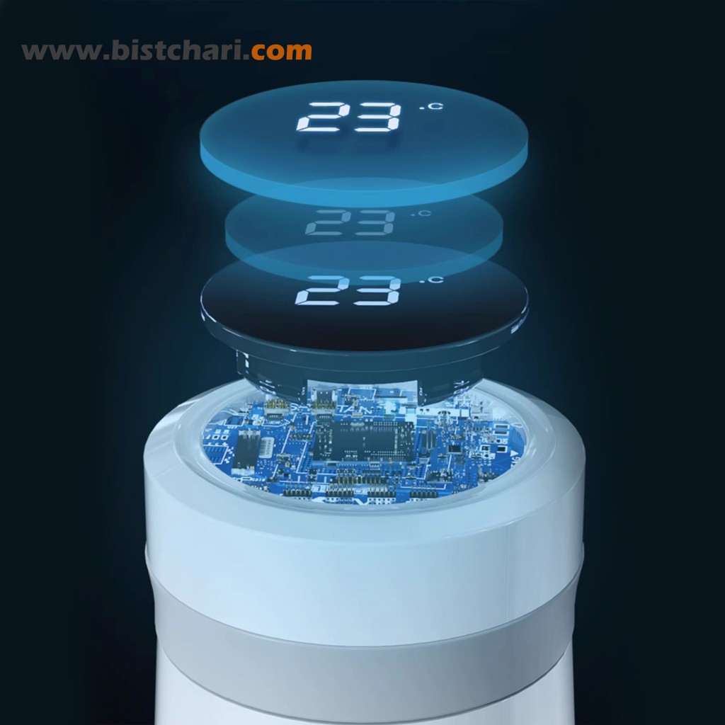 وجود نمایشگر دیجیتال دمای مایع روی درب، امکان مشاهده دقیق دمای نوشیدنی را فراهم میکند. باتری داخلی آن نیاز به شارژ ندارد.