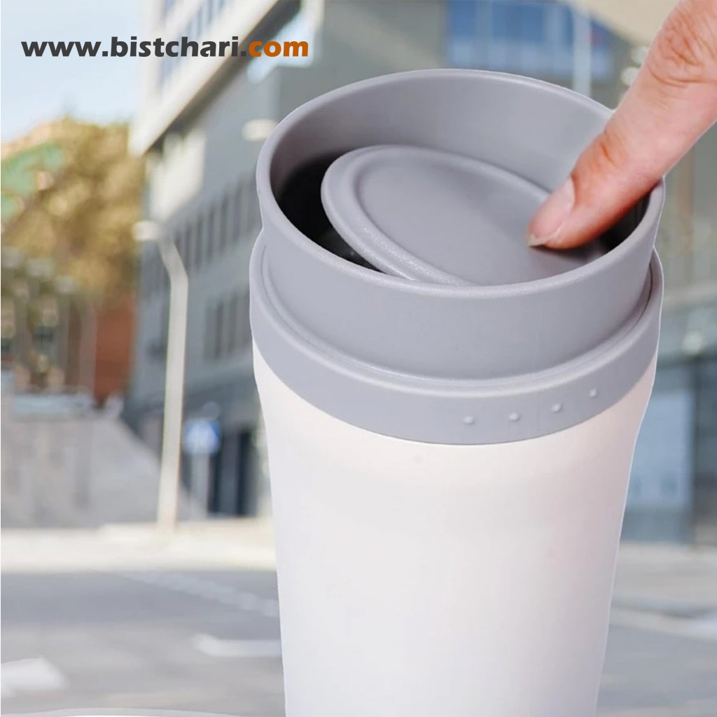 دهانه لیوان بصورت ۳۶۰ درجه باز می شود و از هر طرف قابل نوشیدن است که این برای رانندگی یا در حال حرکت عالی می باشد و در هنگام بسته بودن کاملا ضد نشت میباشد.