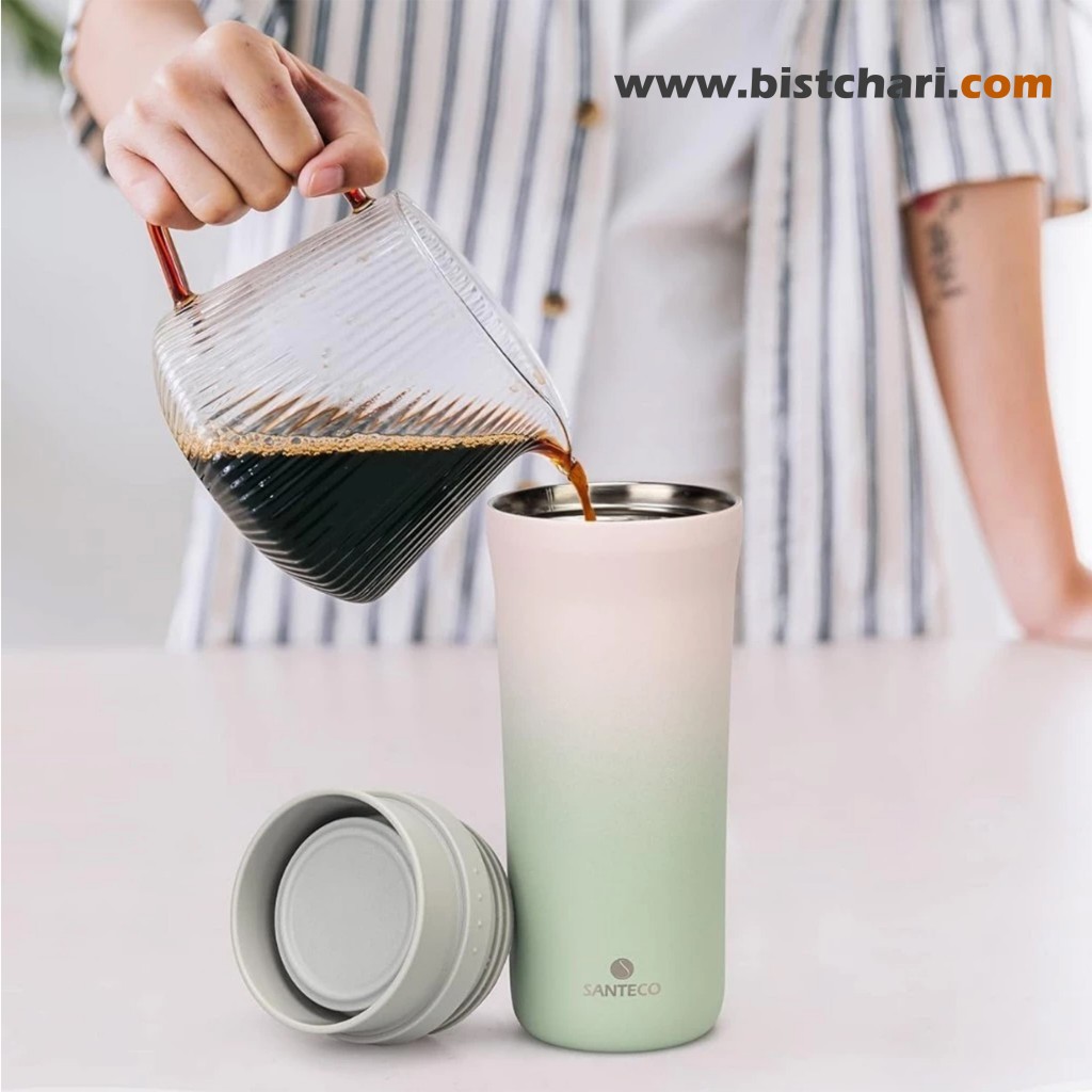 ODDA Mug 480 سانتکو دو جداره دارای ساختار عایق خلاء از جنس استیل ضد زنگ با درجه 18/8، مناسب برای باشگاه، پیاده روی، کمپین و داخل ماشین می باشد.