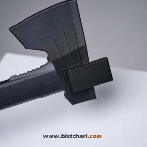 دارای یک کیف پلاستیکی سخت برای محافظت از سر و نوک تیز برای حمل آسان بر روی کمربند شما می باشد. با گیره اش در قابش ثابت می ماند. احتیاط: طبیعی است که قفل پلاستیکی سعی کند تبر را زیر غلاف قرار دهد و برای اطمینان از ایمن بودن تبر کلیک کند. در غیر این صورت ممکن است بیرون بیاید.